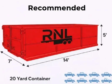 The 20 yard dumpster is for medium to large jobs. Holding up to 8 pickup truck loads.